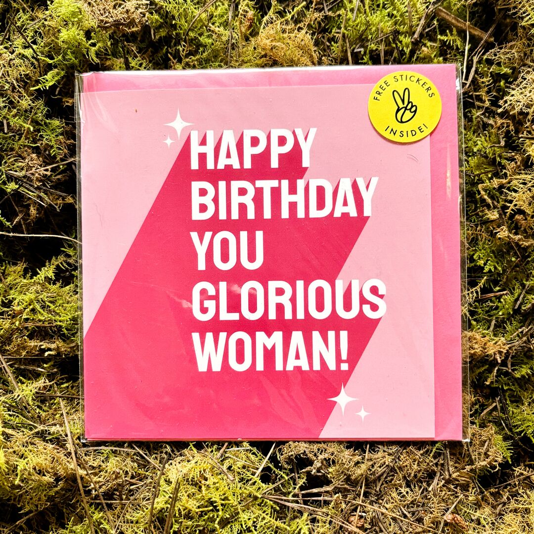 Happy Birthday You Glorious Woman...Blank inside with free stickers by Central 23