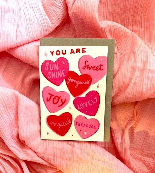 Sweet Hearts Valentine's Card from Lauren Sissons Studio, Blank inside.